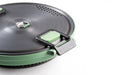 Cook more, carry less. The Escape HS pot combines a collapsible silicone body that takes up takes up 53% less space in your pack with our hyper-conductive anodized base that speeds cook times by up to 30% - that means you eat sooner and cut fuel use. The lid doubles as a strainer and has silicone pads at its grip points to help avoid burns. Graduations molded into the silicone pot body make measuring easy, dual handles make handling easy and fold out of the way for travel. The frypan has a non-stick coating that reduces mess and fuss, and an efficient even-heating design, and everything nests together in a compact storage bag.