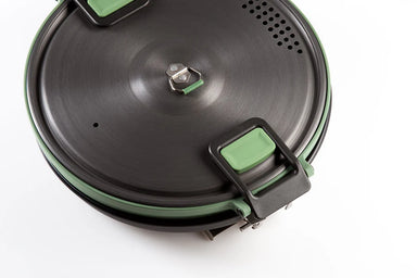 Super rugged, incredibly efficient stainless steel cook set for four – or more Our Big Kahuna stainless steel base camp set is built strong, heats...