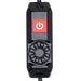 The power button is designed to withstand impacts in high traffic areas without turning on or off accidentally. It produces an audible "click" sound when pressed.  Rotate the dial to adjust brightness.