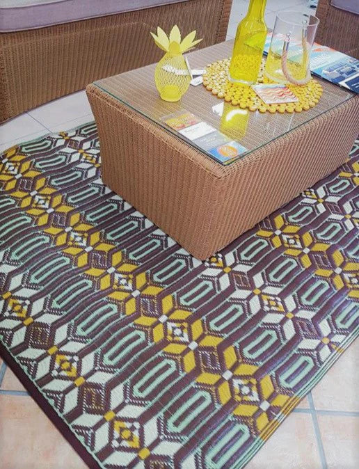 Mad Mats are made from 100% recycled plastic, are UV protected and fade-proof, and come with our one-year color guarantee. Because our rugs are handmade, pattern, color and size may vary slightly.
