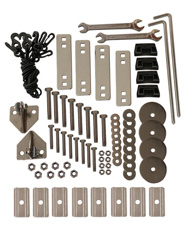 DESCRIPTION A complete mounting kit to fit your roof top tent to your roof rack. Kit includes: 8 x Aluminium slides 4 x Standard size stainless s...