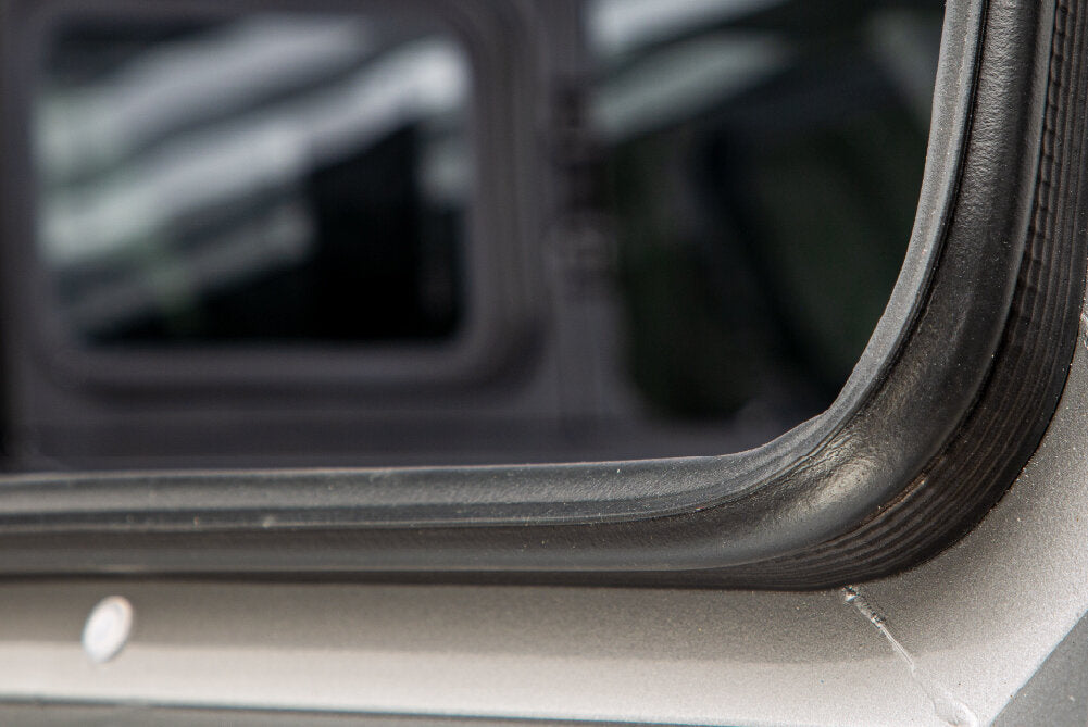 Sleek bonded glass Gullwing side doors come with a three-position vent window.