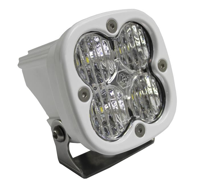 Our Squadron Pro packs 4,900 Lumens at 42 watts that will truly annihilate the night. Dont let this light fool you, although compact in size this LED auxiliary light will literally blind you with brightness. The Pro comes equipped with a sleek black gloss aluminum housing and outshines the competition through both appearance and performance. An industry first 30 Day Satisfaction Guarantee Limited Lifetime Warranty is included for the ultimate in purchase protection. Baja Designs Features: Satisfactions Guarantee 30 Day Money Back Guarantee Limited Lifetime Warranty Complete Purchase Protection uService Replaceable Lenses And Optics ClearView All The Light, Right Where You Need It. MoistureBlock Waterproof, Rain Proof, Submersible CopperDrive Only LED Driven At 100% 5000K Daylight Less Driver Fatigue, Natural ColorSpecifications: Lumens:4,900 Utilizing 4 Cree LEDs Wattage/Amps:42W / 3.5A Dimensions:3.07" x 2.77" x 3.07" Weight:12 ounces LED Life Expectancy:49,930 Hours Front Lens:Hard Coated Polycarbonate Housing:Hard Anodized Powder Coated Cast Aluminum Bezel:Billet Machined Aluminum Hardware Bracket Material:Stainless Steel Exceeds MIL-STD810G (Mil-Spec Testing) Built-In Overvoltage Protection IP69K (Waterproof, Submersible to 9ft) IK10 Compliant (Mechanical Impact Testing) Includes:Squadron Pro LED Light, WhiteMounting Bracket Patterns: Driving/Combo: Maximum trail coverage in a single light. The Driving/Combo pattern is equipped with both Driving (10Á) and Spot (9Á) optics to provide you with a smooth blend of light for both near field applications and distance (Lighting Zone 3) Wide Cornering:BD was the first to develop a pattern specifically for cornering, dust and/or fog conditions. The Wide Driving pattern offers a 42Á flattened horizontal beam for the ultimate in comfort lighting. (Lighting Zones 1 2) Spot:A longer and narrower 9Á beam focus for illumination further down the trail or road. The Spot pattern is designed to be used in conjunction with additional Wide Driving and/or Driving/Combo beam lights. (Lighting Zone 4 5) Flood:Excellent work light or scene light with an extremely smooth 60Á circle that projects about 60 ft). This pattern is not suitable for driving. (Lighting Zone 7)