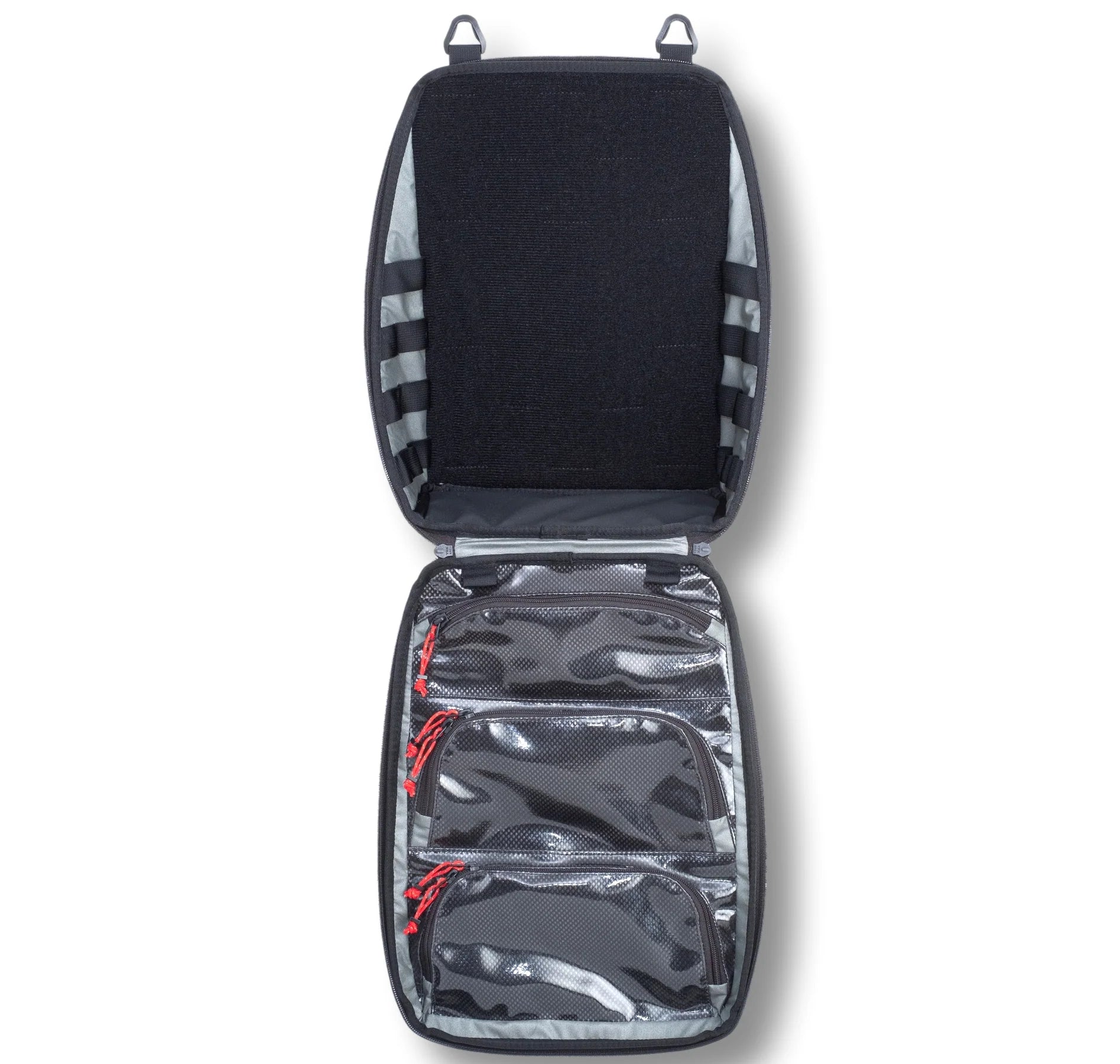 VELCRO® hook compatible top section is ready to accept endless combinations of hook backed accessories.